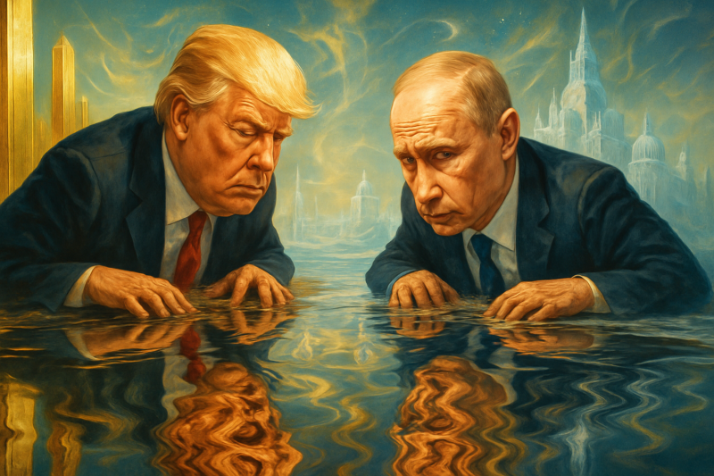 In een tijd van sociale media en oneindige zelfbevestiging leefden er twee machtige mannen, elk in hun eigen koninkrijk van bewondering. De eerste, een goudblonde figuur uit het verre westen, had torens van glas en staal laten bouwen die zijn naam in gouden letters droegen. De tweede, een bleke heerser uit het koude noorden, regeerde vanuit paleizen waarin elke spiegel zijn gezicht weerkaatste als dat van een moderne tsaar.